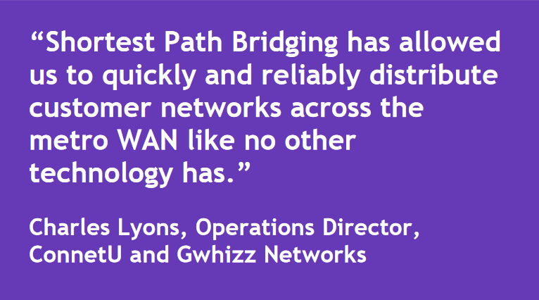 Deployment times, upgrade maintenance windows and human error have all decreased markedly due to a simple Shortest Path Bridging (SPB) fabric that is truly plug-and-play with only a few lines of configuration on each node.